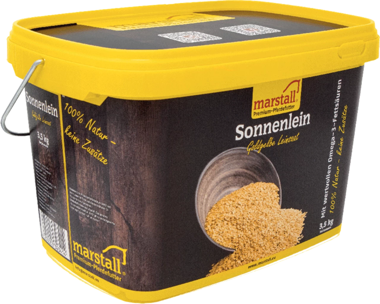 Marstall Sonnenlein beeinhaltet Leinsaat in bester Speisequalität. Die Leinsaat unterstützt nicht nur die Verdauung des Pferdes, sondern wirkt sich auch positiv auf Fell und Hautqualität aus.