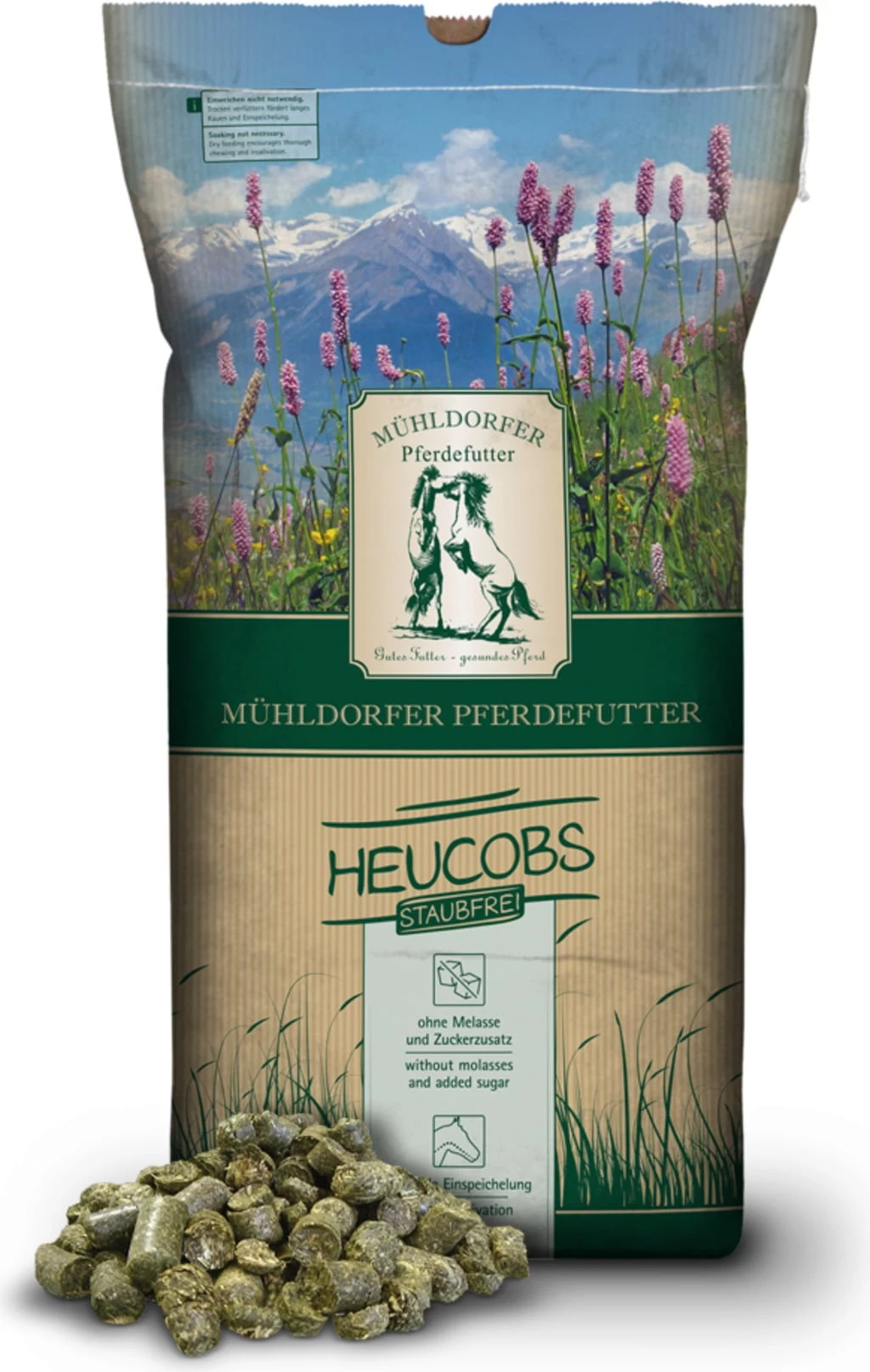 Der Qualitäts-Heuersatz aus Oberbayern, optimal für Allergiker oder alte Pferde (ohne Zahnprobleme). Fester gepresst als Heucobs Medium, geeignet zum trocken Füttern.