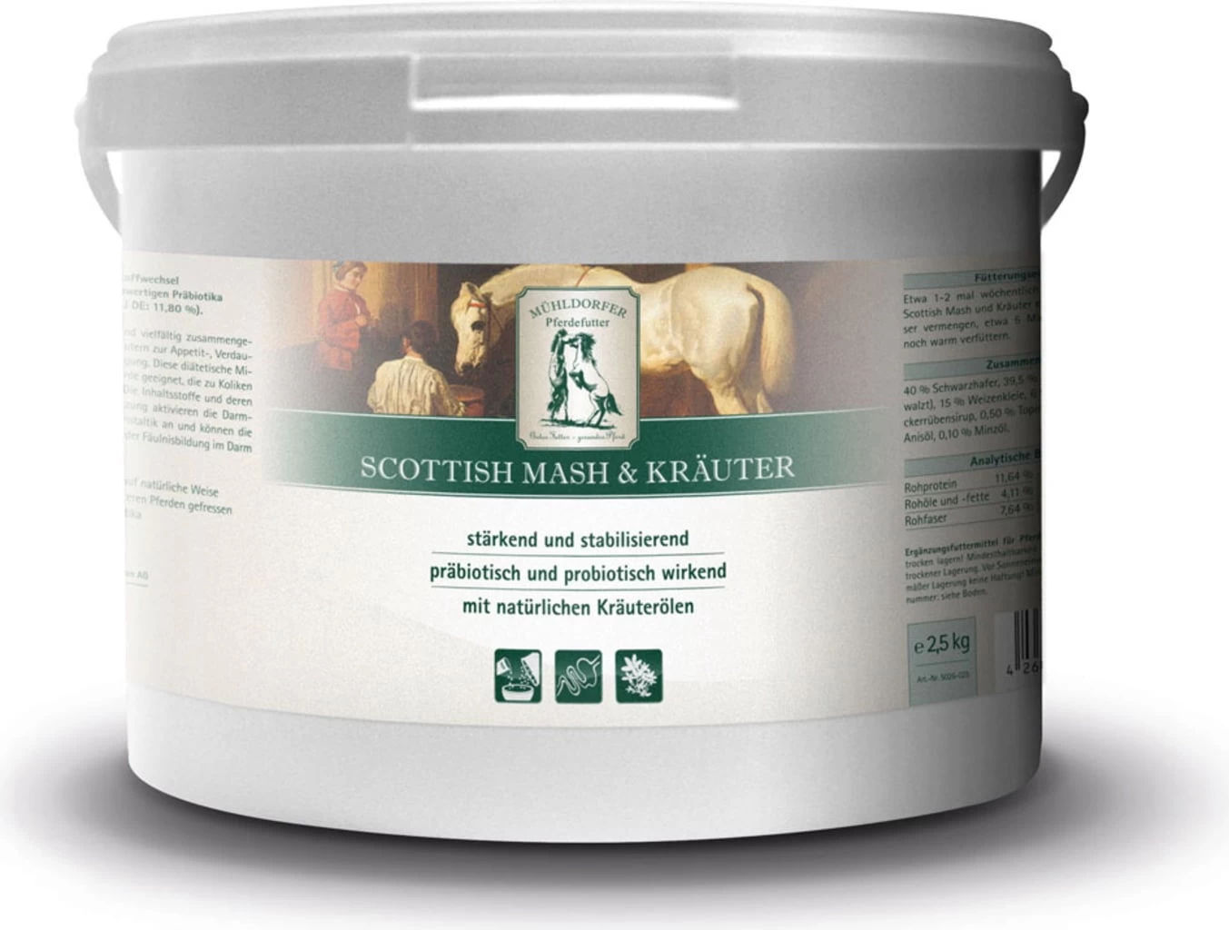 Ca. 1-2 mal wöchentlich die normale Ration mit Scottish-Mash und Kräuter ersetzen, mit heißem Wasser vermengen, etwa 5 Minuten ziehen lassen und noch warm verfüttern.