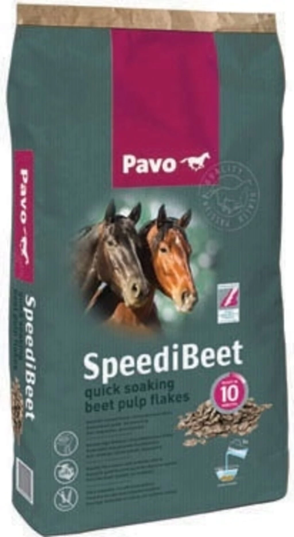 Wichtig: Pavo SpeediBeet darf auf keinen Fall trocken gefüttert werden. Bewahre die Rübenschnitzel daher immer in einem gut verschlossenen Behälter auf, sodass frei laufende Pferde nicht davon fressen können.