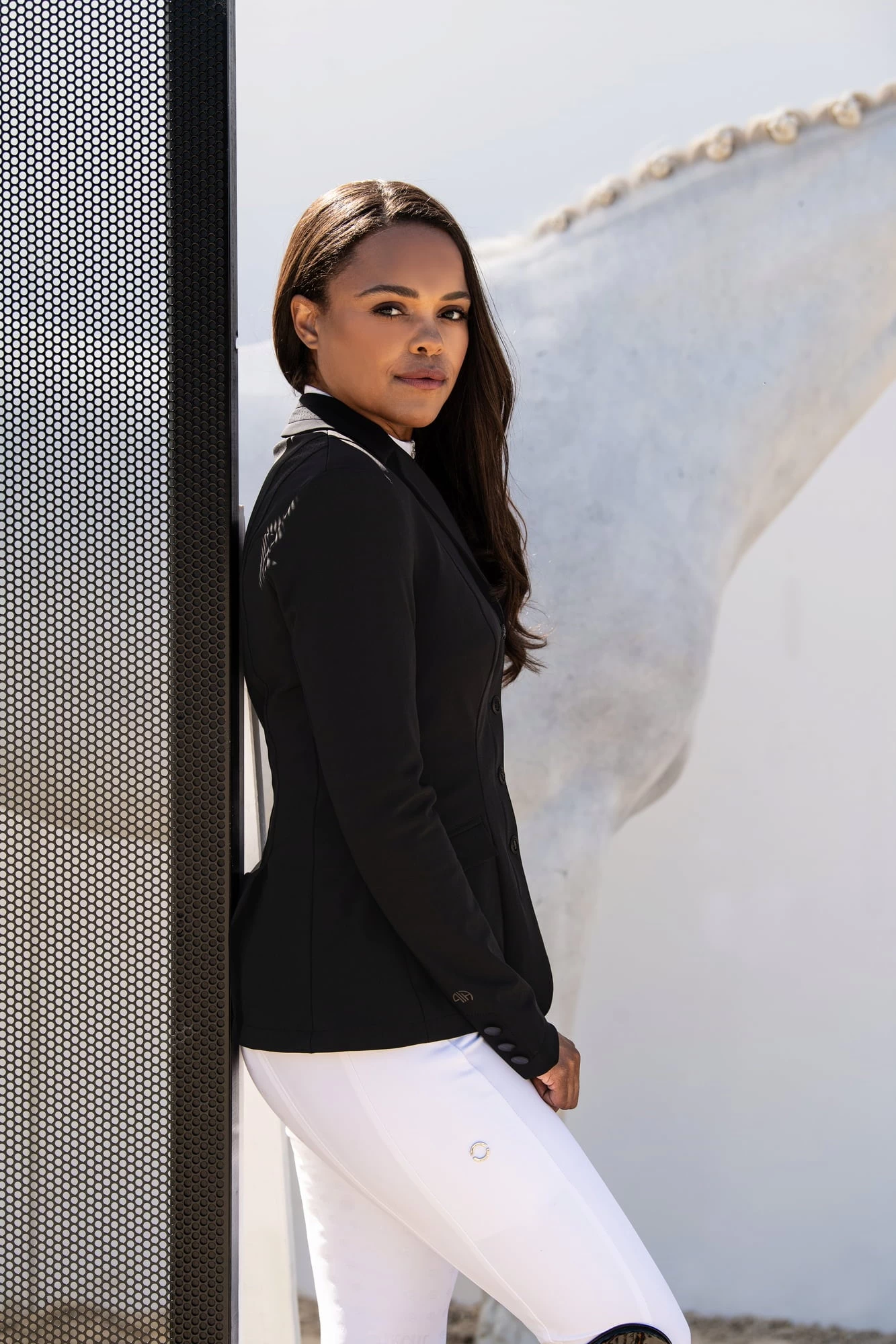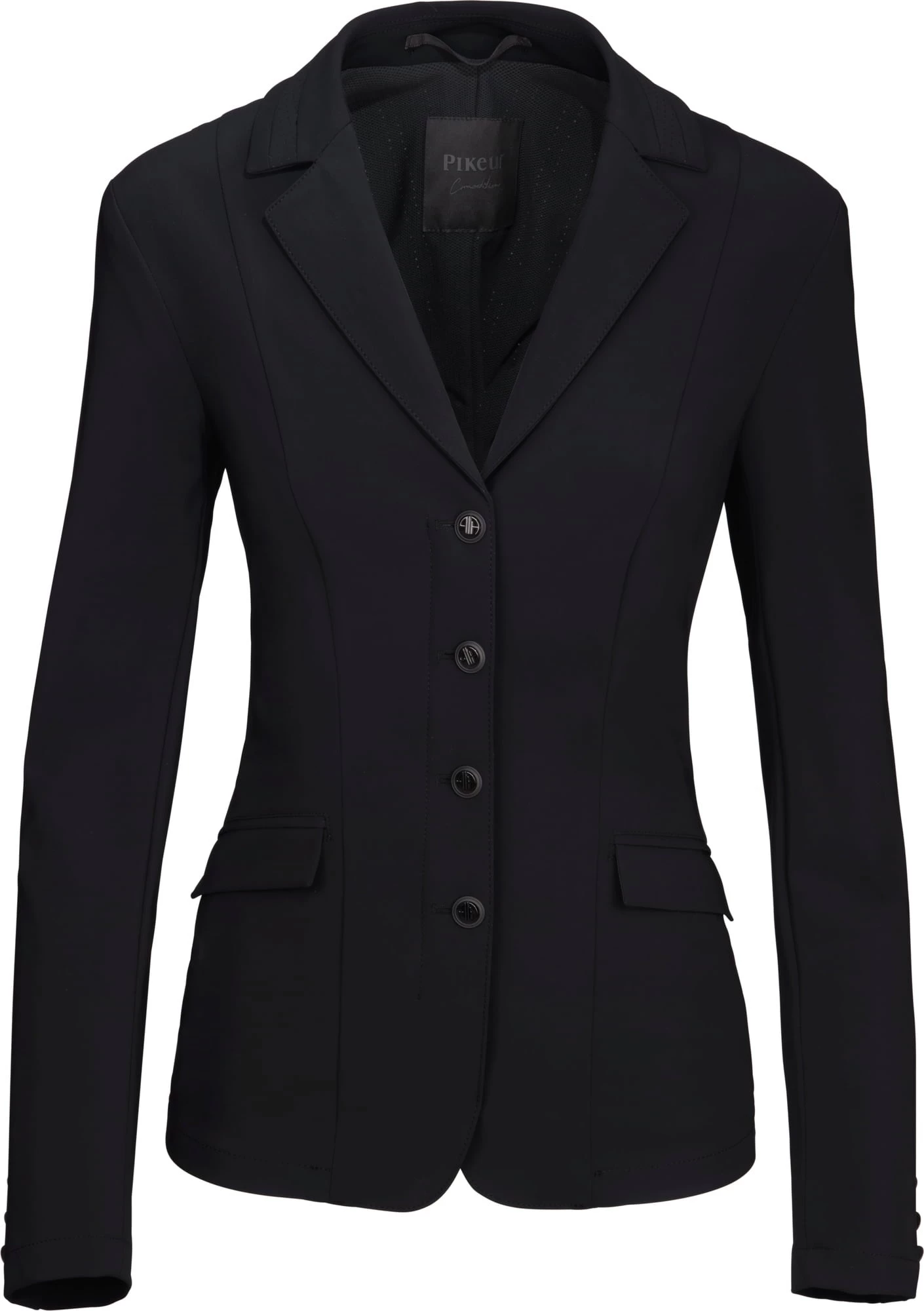 Hergestellt aus atmungsaktivem Tech-Jersey-Funktionsstoff, bietet dieses Hybridsakko nicht nur einen herausragenden Tragekomfort, sondern gewährleistet auch durch das luftdurchlässige Mesh-Futter im Inneren des Sakkos eine effektive Belüftung während anspruchsvoller Reiteinheiten.