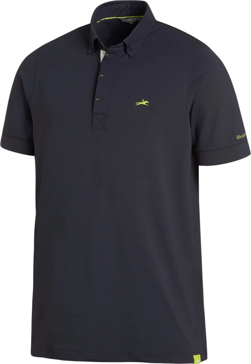 Schnelltrocknendes Poloshirt für sportliche Herren. Das verwendete Material ist zudem antibakteriell und schützt vor UV-Strahlung. Zu den modischen Details zählen die verdeckte Knopfleiste mit drei Zierriegeln, ein weißer Untertritt sowie sorgfältig gestickte Logos an Brust und Ärmel.