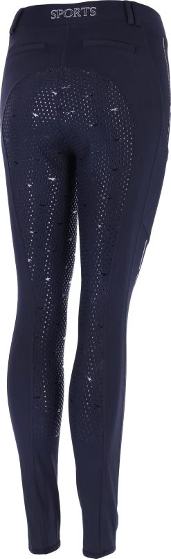 Diese sportliche Reitleggings kleidet dich mit tollen Funktionseigenschaften. Der Vollbesatz aus rutschfestem Silikonprint gibt dir ein sicheres Gefühl im Sattel. Das formstabile Polyamid-Elasthan-Gemisch wirkt selbstverständlich atmungsaktiv und schnelltrocknend.
