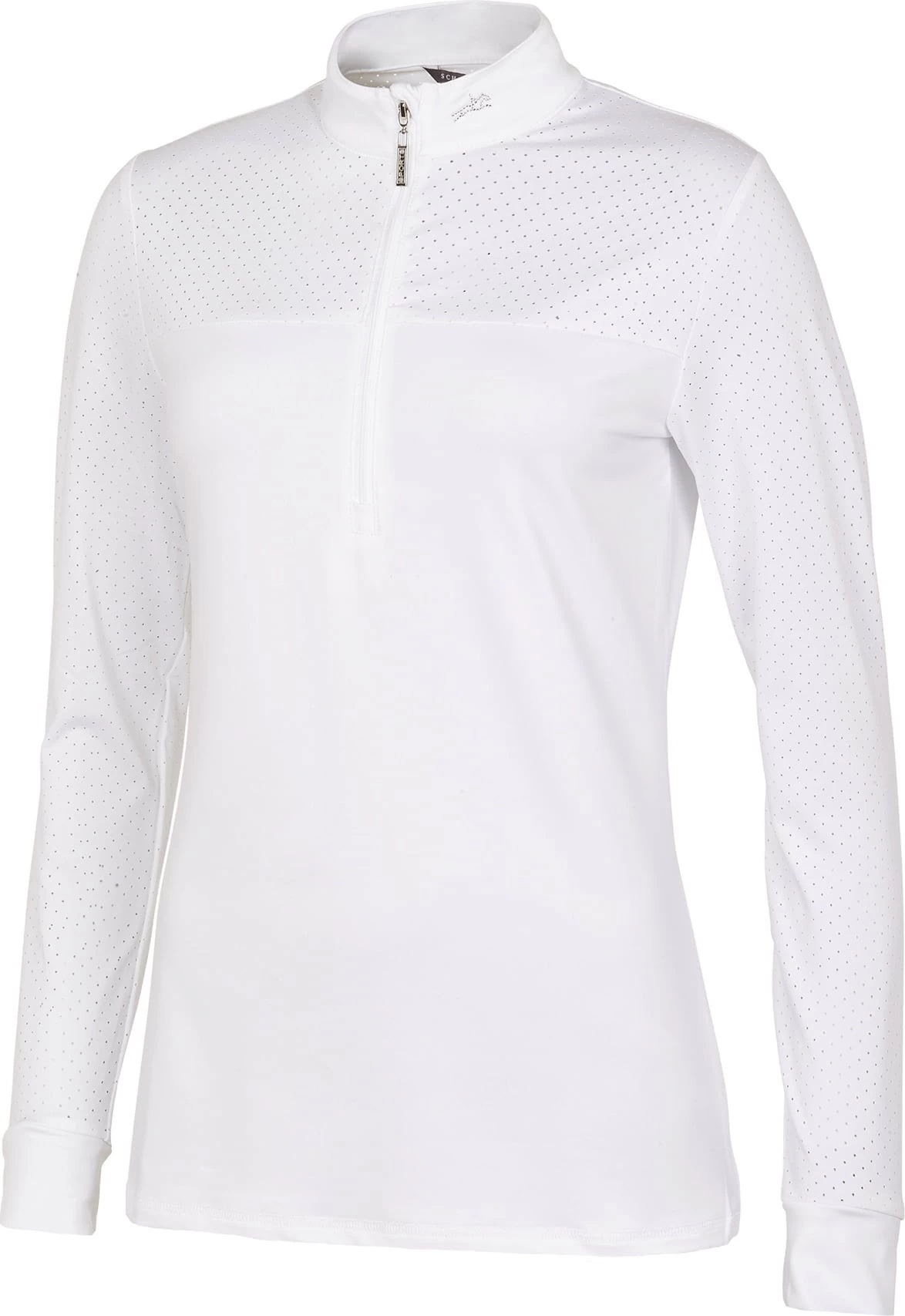 Dieses luftig-leichte Funktionsshirt kann im Training und auch auf Turnieren getragen werden. Perforierte Einsätze an der vorderen und hinteren Passe als auch an den Ärmel unterstützen die atmungsaktiven Eigenschaften maximal. Zudem wirkt die Funktionsware schnelltrocknend und schützt vor UV Strahlen. Ausgestattet mit praktischem Halb-Zip.