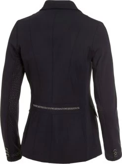 Elegantes Sakko für Damen, das mit seinem funktionalem Material zur Gänze überzeugt. Der elastische Stoff ist atmungsaktiv, trocknet schnell und ist zusätzlich völlig knitterfrei. Geschmackvolle Kristall Mesh Dekorationen am Rückenriegel und an den Pattentaschen verleihen dem Sakko einen dezenten Glanz. Bietet zu den Knöpfen auch einen versteckten Reißverschluss. Mit Logo auf der Verschlussseite und Rubber Badge am linken Ärmel.