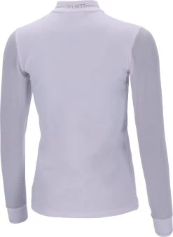 Tolles Langarm-Turniershirt mit hervorragenden Funktionseigenschaften. Optisch überzeugt das Langarmshirt mit verstecktem Halb-Zip vorne und mit großzügigen Strass-Details an Kragen, Brust und Manschetten. Die Materialkombination aus Polyester und Elasthan wirkt atmungsaktiv, schnelltrocknend und antibakteriell. Obendrein schützt das dichte Gewebe vor UV-Strahlen.
