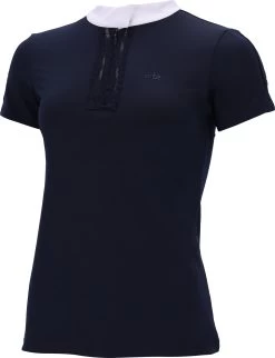 Mach dich für die Turniersaison 2024 bereit mit dem top Funktions-Turniershirt SPChristina Style von Schockemöhle Sports. Profitiere von einem ausgezeichneten Tragekomfort durch atmungsaktive und schnelltrocknende Eigenschaften. Optisch besticht das Turniershirt mit seinem sportiven Stehkragen und der Spitze entlang des Reißverschlusses. Eine tonale Strass-Applikation perfektioniert das Design.