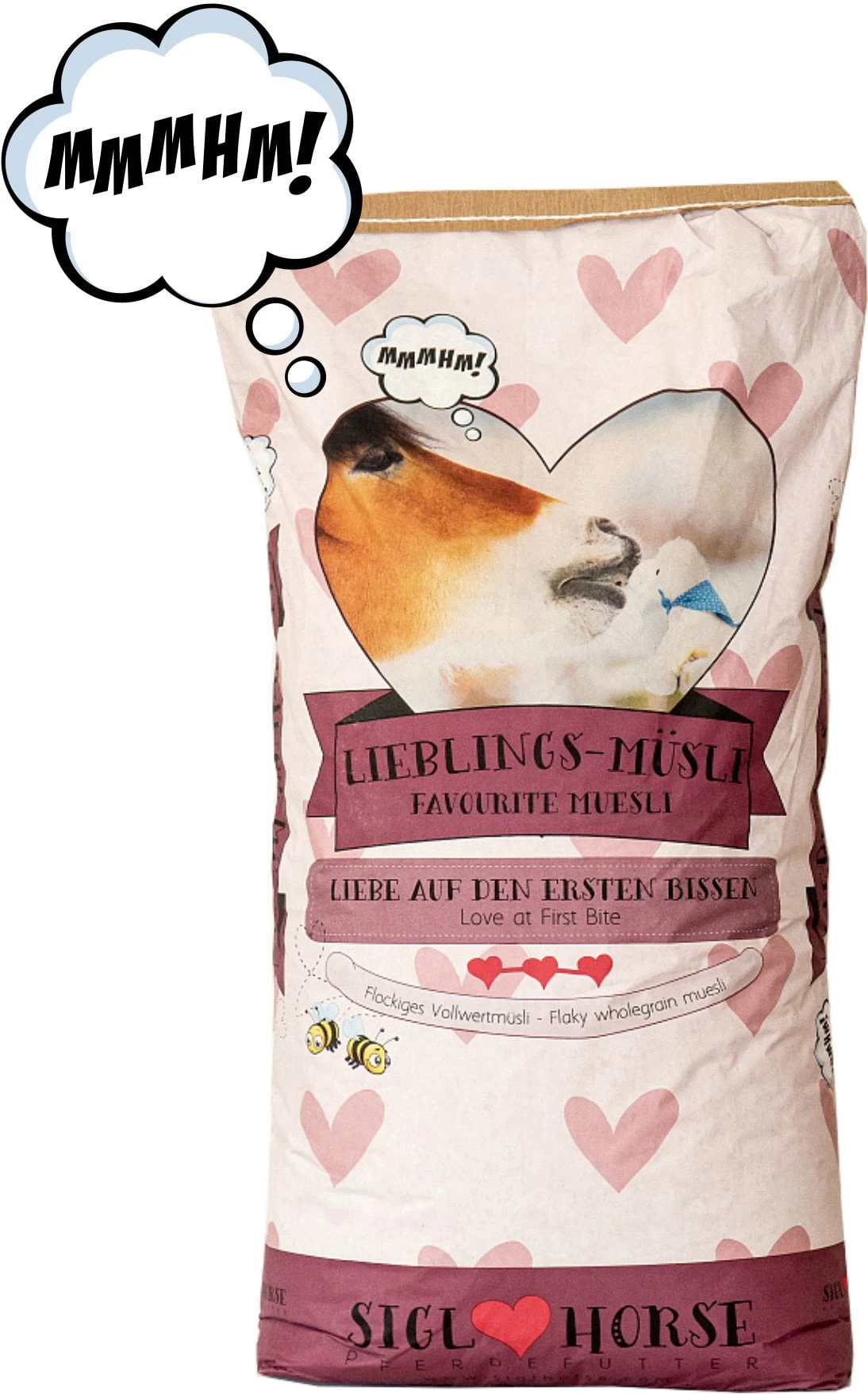 Achtung: Siglhorse Lieblings-Müsli Sack gut vor allen Pferden verstecken! Nie mit offenem Siglhorse Lieblings-Müsli in der Nähe von Pferden aufhalten. Siglhorse Pferdefutter übernimmt keine Haftung für Schäden, die durch Missachtung dieser Warnungen und anderes waghalsiges Verhalten entstehen.