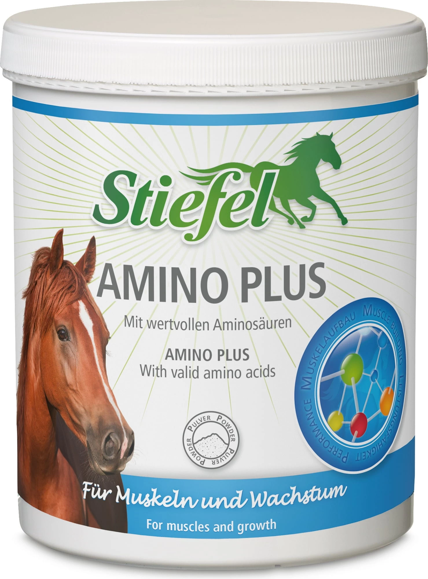 Stiefel Amino Plus enthält wichtige Aminosäuren und Mineralstoffe, um fütterungsbedingte Mangelerscheinungen auszugleichen. Stiefel Amino Plus kann den Muskelaufbau und die Leistungsfähigkeit bei Sportpferden fördern sowie bei Fohlen und Jungpferden in der Wachstumsphase den Aufbau von Knochengerüst und Muskulatur unterstützen.