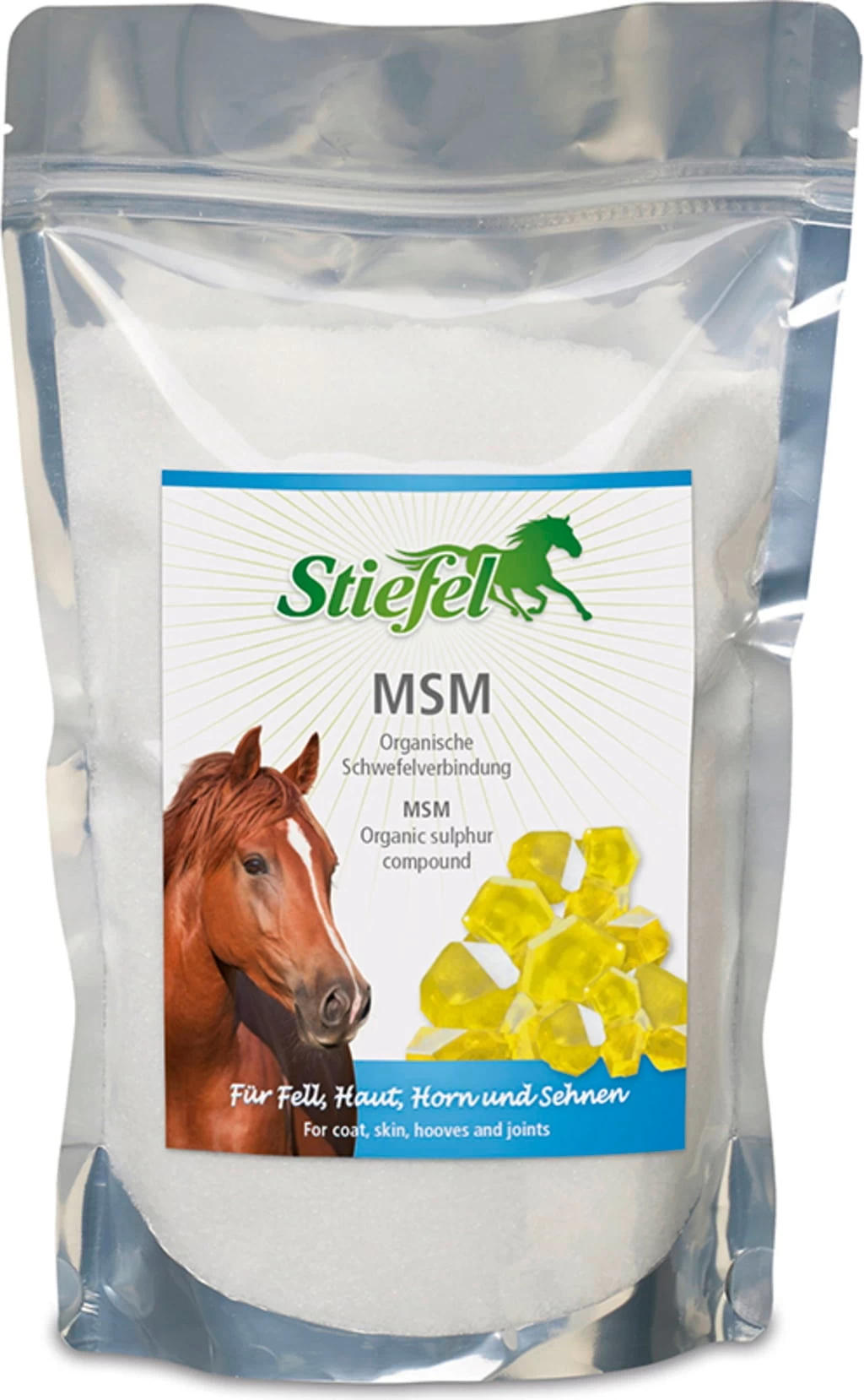 Stiefel MSM ist eine organische Schwefelverbindung, die zur Unterstützung des Gelenkstoffwechsels eingesetzt werden kann. Stiefel MSM kann sich positiv auf das Fell des Pferdes auswirken und gesundes Hufwachstum fördern.