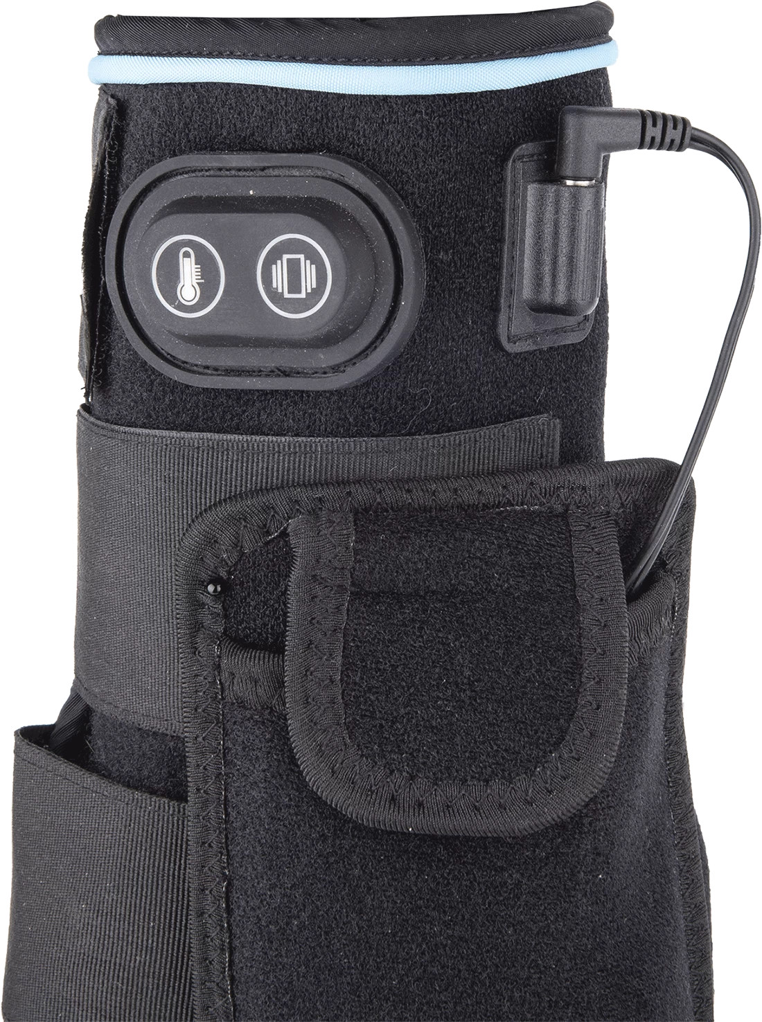 Vibrieren, kühlen und wärmen – die W-Health & Care Gamasche besitzt drei Funktionen, die bei der Regeneration des Pferdebeins unterstützen können. Nach längeren Ruhephasen kann die Gamasche auch zum Aufwärmen benutzt werden.